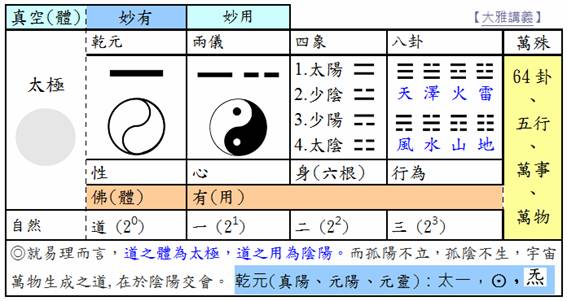 (¤G) ¤@³±¤@¶§´N¬O¡§¤Ó·¥¥Í¨â»ö¦A¥Í¥|¶H¡AÄ~¤§¥Í¤K¨ö¦Ü¤»¤Q¥|¨ö¤D¦Ü¦¨¤§»P¤Ñ°ª¡¨ªº¹D¸ô¡A©l²×¥H¡§¤@³±¤@¶§¡¨Ä~ÄòÂS¥Í¨ÃÄ~©Ó¡§¥Í¤ø¡¨ªº¹Lµ{¥s°µ¡§µ½¡¨¡A¨Ï¡§¤@³±¤@¶§¡¨Ä~ÄòÂS¥Í¦Ü¤Ñ°ª¦Ó¦¨´N¸Uª«ªºªÃ©Ê¥s°µ¡§¹D©Ê¡¨¡C³o¬O¤Õ¤lÅ鮩¡§¹D¡¨ªº¤ß±o¡A¦¹»y¨Ó¦Û¡§¥ñ¿ª¤»¤Q¥|¨ö¦¸§Ç¡¨¹Ï(°Ñ¾\16©ö¸gÃÒÄÀ16-66-02¡F¤j¶®Á¿¸q¡F¥»Á¿¸q¹Ïªº²Ä¤G¼h»P¤Uz¤º®e¤£¦P)¡A±q¤U©¹¤W¼Æ¡A²Ä¤@¼h¬O¤Ó·¥¡A²Ä¤G¼h¬O¤@³±¤@¶§¡]ºÙ§@¨â»ö¡^¡A²Ä¤T¼h¬O²Ä¤G¼h©Ò¥Í¤§¤@³±¤@¶§§Y¥|¶H¡A²Ä¥|¼h¬O²Ä¤T¼h©Ò¥Í¤§¤K¨ö¡K¡K¨C¼h³£¬O¤@¶§¥Í¥X¤@³±¤@¶§¥B¤@³±¤]¬O¥Í¥X¤@³±¤@¶§¡A³o´N¬O³±¶§Åܤƪº¹D¸ô¡A¬GºÙ¤@³±¤@¶§¤§¿×¹D¡A¦p¦¹Ä~Äò¥ÃµL¤î¹Òªº¥Í¤U¥h¥i»P¤Ñ»ô¡A¬GºÙ¦¨¤§ªÌ©Ê¤]¡A³oùتº¡§©Ê¡¨«üªº¬O¡§¹D©Ê¡¨¡F¦Ó¨C¤@¼hªº¥Í¤Æ¹Lµ{³£¬O¤@³±¤@¶§ªº¥Í¤Æ¡A¦Ü²¦Ü©ö(¥tµù¡G°®¥H©öª¾¡A©[¥H²¯à)¦Ó¥B¨C¤@¼hªº¥Í¤Æ³£¬OÄ~©Ó¤F«e¤@¼hªº¥Í¤Æ³W«ß¨Ã¤©¥H©µÄò¡A¬GºÙÄ~¤§ªÌµ½¤]¡C¥@¶¡¸U¨Æ¸Uª«ªº¥ÍªøÅܤƳ£¬O±q²Ó·L¨ìÅãµÛ¥H¦Ü©ó½èÅÜ¡A©Ò¥H(¹D¼w¸g²Ä¤»¤Q¤T³¹¡F¥t¥i°Ñ¾\18¹D¼w¸gÁ¿¸q18-69-63¡Fº¶)¦Ñ¤l»¡¡G¡§¹ÏÃø©ó¨ä©ö¡A¬°¤j©ó¨ä²Ó¡F¤Ñ¤UÃø¨Æ¥²§@¤_©ö¡A¤Ñ¤U¤j¨Æ¥²§@©ó²Ó¡¨¡C¡§¥ñ¿ª¤»¤Q¥|¨ö¦¸§Ç¡¨¹Ï¡A¥Î¼Æ¦rªí¥Ü´N¬O·¨½÷¤T¨¤§Î(µù1)¡A¬O¼Æ¾Ç¤¤¡]a+b¡^ªºn¦¸¾ªº®i¶}¦¡«Y¼Æ¡C¦¹¹ÏÁÙ»¡©ú¤@¥ó¨Æ¡A¡§³±¦b¶§¤§¤º¤£¦b¶§¤§¹ï¡¨¡A³o¥y¸Ü¤£¦ý²[»\¤F¡§¬J¹ï¥ß¤S²Î¤@¡¨ªº«ä·Q¡A¦Ó¥B²[»\¤F¡§¹ï¥ßÂù¤è³£Åé²{¤F¾ãÅ骺¸ê°T¡¨ªº¤º®e¡A¥Î¦Ñ¤lªº¸Ü»¡´N¬O¡§ª¾¨ä¥Õ¦u¨ä¶Â¡A¬°¤Ñ¤U¦¡¡C¬°¤Ñ¤U¦¡¡A±`¼w¤£ÊÖ,´_Âk©óµL·¥¡¨¡C(µL·¥¡G·N¬°³Ì²×ªº¯u²z¡C) (¤T) ¦Ûº~¥N¥H¨Ó¡A¤¤°ê©ö¾Ç®a©Mõ¾Ç®a¹ï³o¡u¤@³±¤@¶§¤§¿×¹D¡v¦³¤£¦Pªº¸ÑÄÀ¡C ¦èº~¨Ê©Ð¥H¡§¤G®ð¬Û·P¦Ó¦¨Å顨¡B¡§¤£¥i°õ¤@¬°©w¶H¡¨ ¸ÑÄÀ ¡§¤@³±¤@¶§¤§¿×¹D¡¨¡C𷨤h¾±¡m±ç¶Ç²¨¡n¤Þ¤ý´]¹ï³o¤@©RÃDªº¸ÑÄÀ¡G¡§¤@³±¤@¶§ªÌ¡A©Î¿×¤§³±¡A©Î¿×¤§¶§¡A¤£¥i©w¦W¤]¡C¡¨ ®ÊÁú±d§B»{¬°¡§¹D¡¨¬O¡§µL¤§ºÙ¡¨¡A¨äµL§ÎÅé¡A¦Ó¦³¥\¥Î¡C¥L»¡¡G¡§³±¶§Áö®íµL¤@¥H«Ý¤§¡C¦b³±¬°µL³±,³±¥H¤§¥Í¡F¦b¶§¬°µL¶§¡A¶§¥H¤§¦¨¡A¬G¤ê¤@³±¤@¶§¤]¡C¡¨¥L¤Ï¹ï¥H¹ê¦³¨Ó»¡©ú³±¡B¶§»P¹D¡C §º¥Nµ{À[¥H¡§©Ò¥H³±¶§ªÌ¡¨¸ÑÄÀ¡§¹D¡¨¡A¥H³±¶§¬°¡§®ð¡¨¡F¦¶¿Q«h»¡¡G¡§³±¶§¡¹BªÌ¡A®ð¤]¡C¨ä²z«h©Ò¿×¹D¡C¡¨°ßª«¥D¸qªÌ±i¸ü¥H®ð¤Æ¹Lµ{¸ÑÄÀ¹D¡A»{¬°®ðݦ³³±¶§¨â¤è±¡AºÙ¬°¡§ÝÅé¦ÓµL²Ö¡¨¡A®ð¦bÅܤƹLµ{¤¤Á`¦³²M¿B¡B°ÊÀR¡B©}¦ù¨âӤ豦Ӥ£°¾¼o¡A¤Ñ¦a¸Uª«³£¦p¦¹¡C [¥t¥i°Ñ¾\13¤å¿ï13-22¡F¡Fº¶] ¤ý¤Ò¤§Ä~©Ó±i¸üªº¾Ç»¡¡A»{¬°¹D¬O³±¶§¤G®ðªº²Î¤@Åé¤Î¨ä¬Û¤¬§@¥Îªº³W«ß¡A¥H¹ï¥ß²Î¤@Æ[ÂI¸ÑÄÀ¤@³±¤@¶§¡F»{¬°¥ô¦ó¹ï¥ßªº¨Æª«(¥]¬A¨ö¶H)¬J¬Û¤Ï¤S¬Û³q¡A¬J¬Û¤À¤S¬Ûµ²¦X¡A¡§¤@¤@¤ªªÌ¡A¬Û¦X¥H¦¨¥D«ù¦Ó¤À¾¯¤§¿×¤]¡¨¡F«ü¥X¥u¨£¡§¤@P¡¨¡]²Î¤@¡^¬°¡§±e¤H¡¨¡A¥u¨£¡§¨â¦æ¡¨¡]¹ï¥ß¡^¬°¡§¦k¤H¡¨¡A±N¥j¥NªºÅGÃÒªk«ä·Q±À¦V·sªº¤ô·Ç¡C ¦ý±i¸ü©M¤ý¤Ò¤§³£»{¬°¨Æª«¦bµo®i¤¤¡A³±¶§¹ï¥ß²×±N¡§©M¦Ó¸Ñ¡¨¡A¥¼¯à»{ÃѨì¹ï¥ß±°«ª§ªºµ´¹ï©Ê¡C